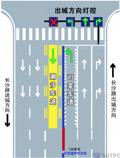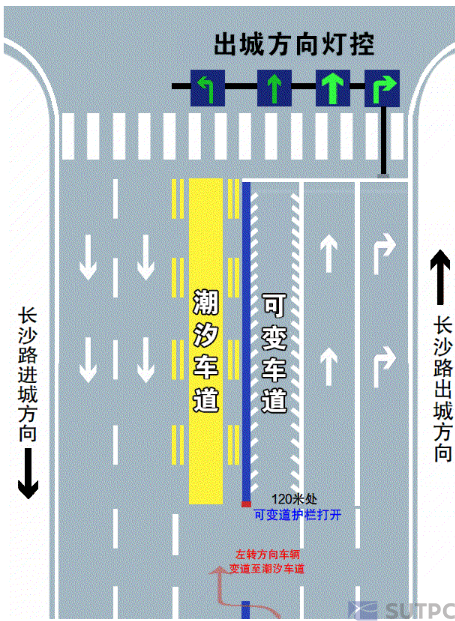 潮汐车道与可变车道结合,适应车辆流向一天内的变化。
