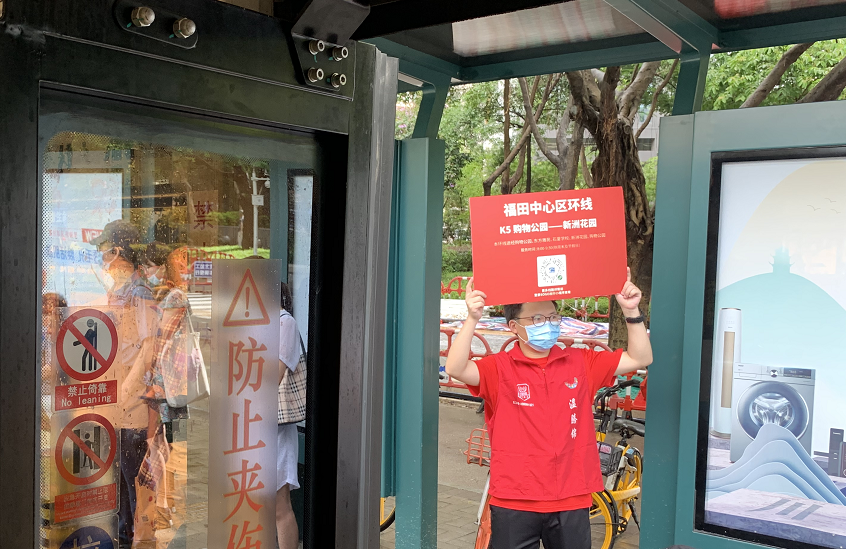 公交站台有工作人员指引如何扫码乘坐